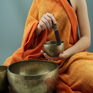 Sound healing works by using certain sound frequencies and waves to enable the reduction of stress and anxiety and to create a meditative and relaxing state.